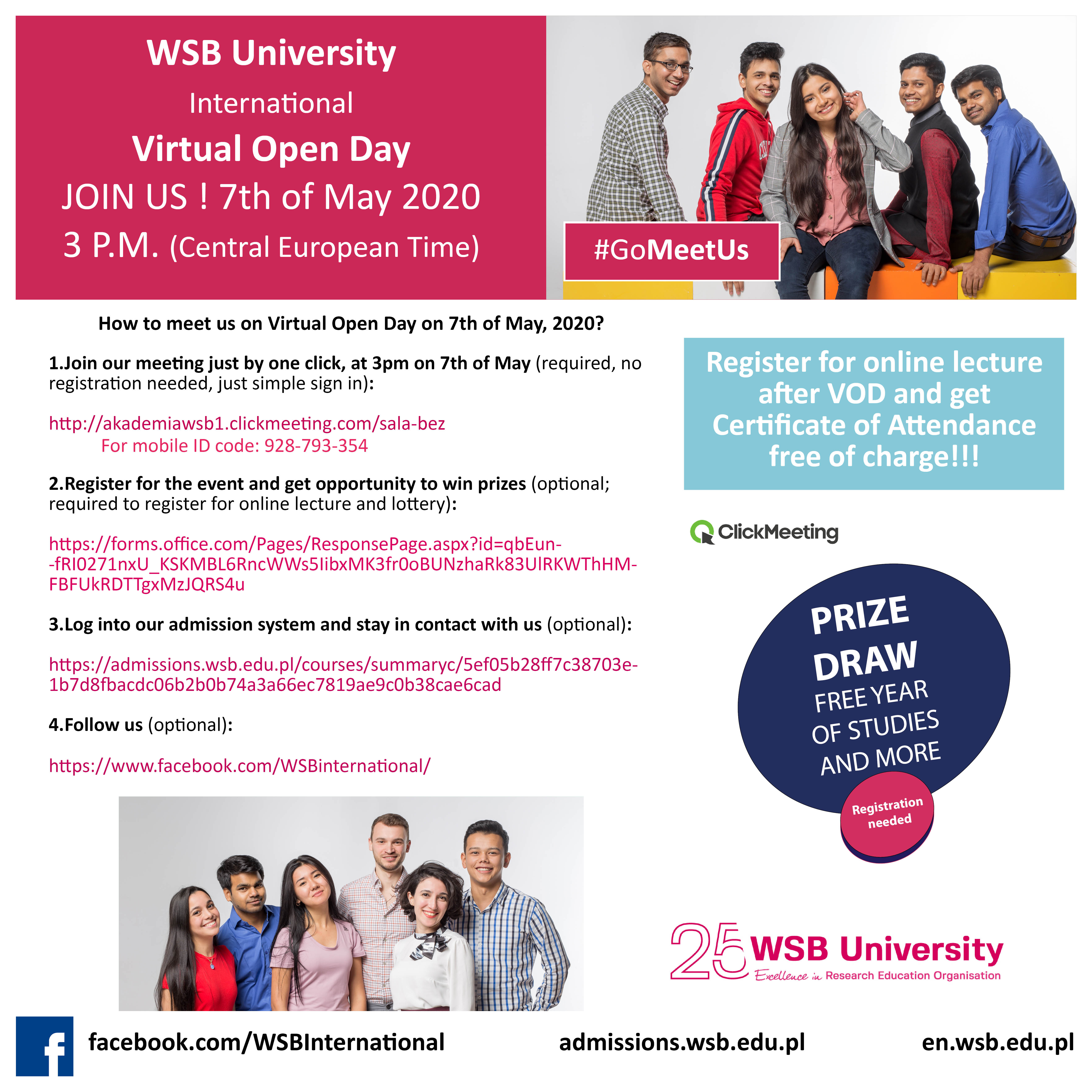 Invitation to Virtual Open Day at WSB University