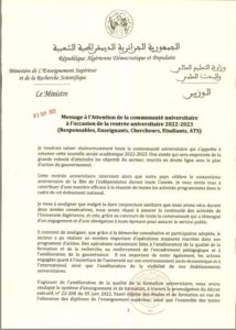 رسالة وزير التعليم العالي والبحث العلمي