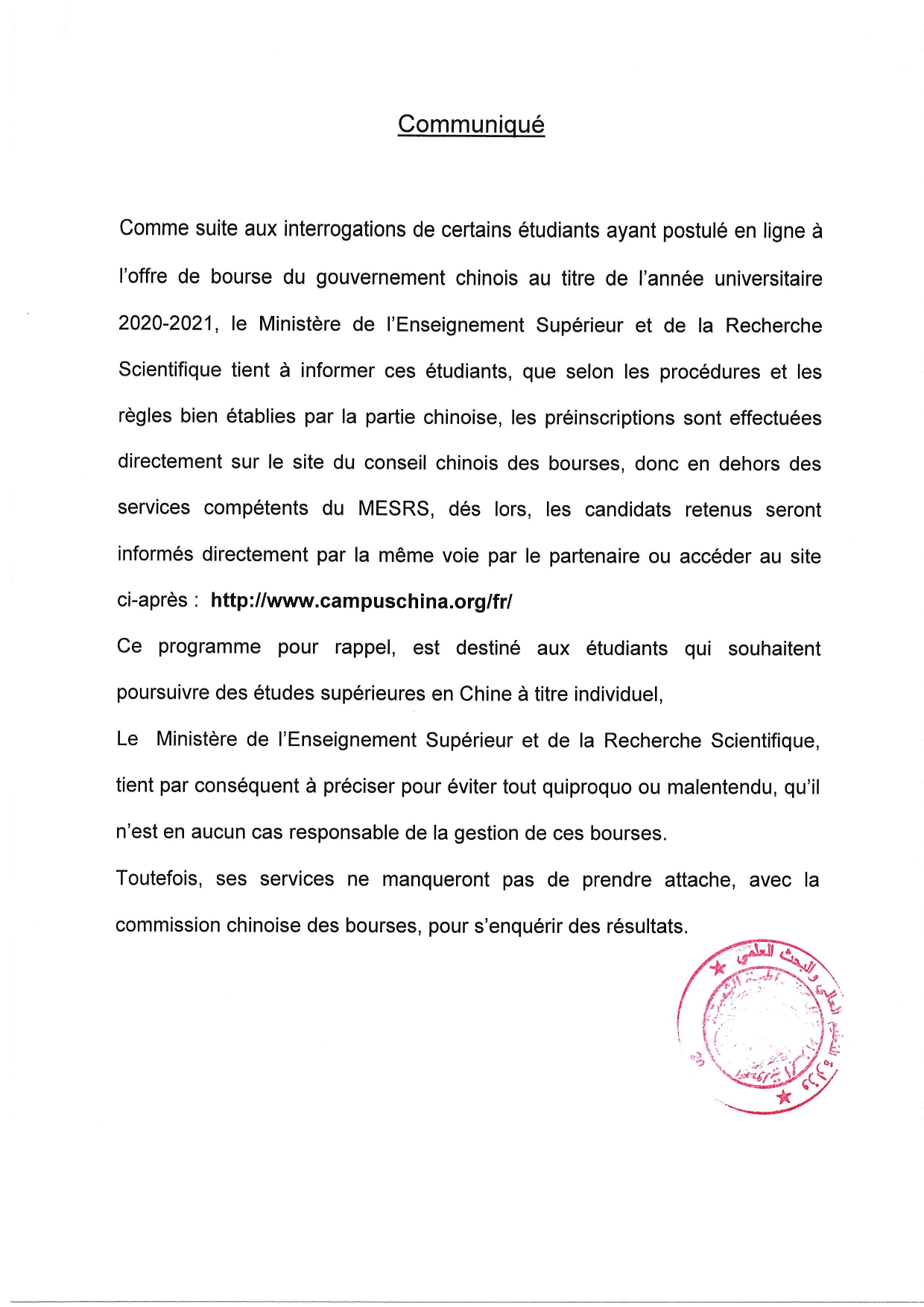Avis aux étudiants admis au programme de bourse d'études en Hongrie au titre de l'année 2020-2021
