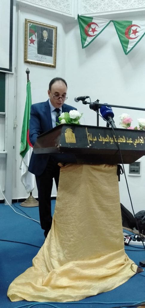 في كلمته التي ألقاها مدير الجامعة الدكتور عميروش بوشلاغم ورحب فيها بضيوف الجامعة أوضح أن القضاء يمثل السمع والبصر والفؤاد للمجتمع والجامعة هي القلب النابض ومركز اشعاع علمي وفكري وحضاري في جميع الأمم والمجتمعات.