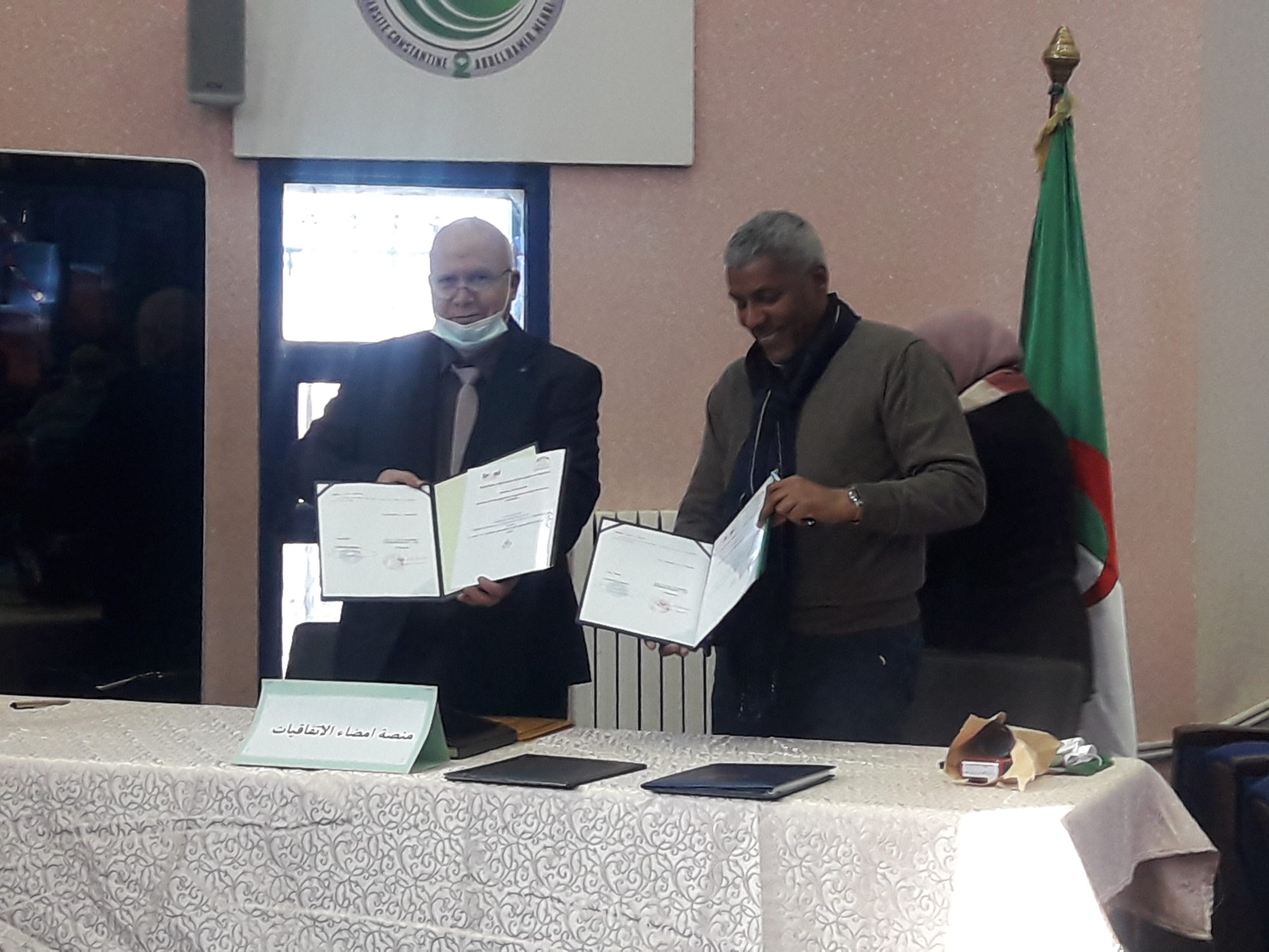 مشاركة مدير المركز الجامعي عبد الحفيظ بوالصوف – ميلة الدكتور عميروش بوشلاغم ونائبه المكلف بالبحث العلمي والدراسات العليا والعلاقات الخارجية الدكتور عقون شراف في أشغـال النــــدوة الوطنيـــــة المنظمـــة برحاب جامعــة قسنطينة 2 حول الملكيـــة الصناعية وتم الامضاء على اتفاقيـــة شراكـــة وتعـاون بين المركز الجامعي عبد الحفيظ بالصوف – ميلة والمعهد الوطني الجزائري للملكية الصناعيــــــة ( INAPI ) لتعطي الضوء لاستحداث مركـــز الدعـــم التكنولوجي والابتكار (CATI) بالمركز الجامعي ميلة، كما تم الإمضاء أيضا على نفـــس الاتفاقيــــة لاستحداث ( CATI ) بجامعة قسنطينة 1 وجامعة قسنطينة 2 عبد الحميد مهري .