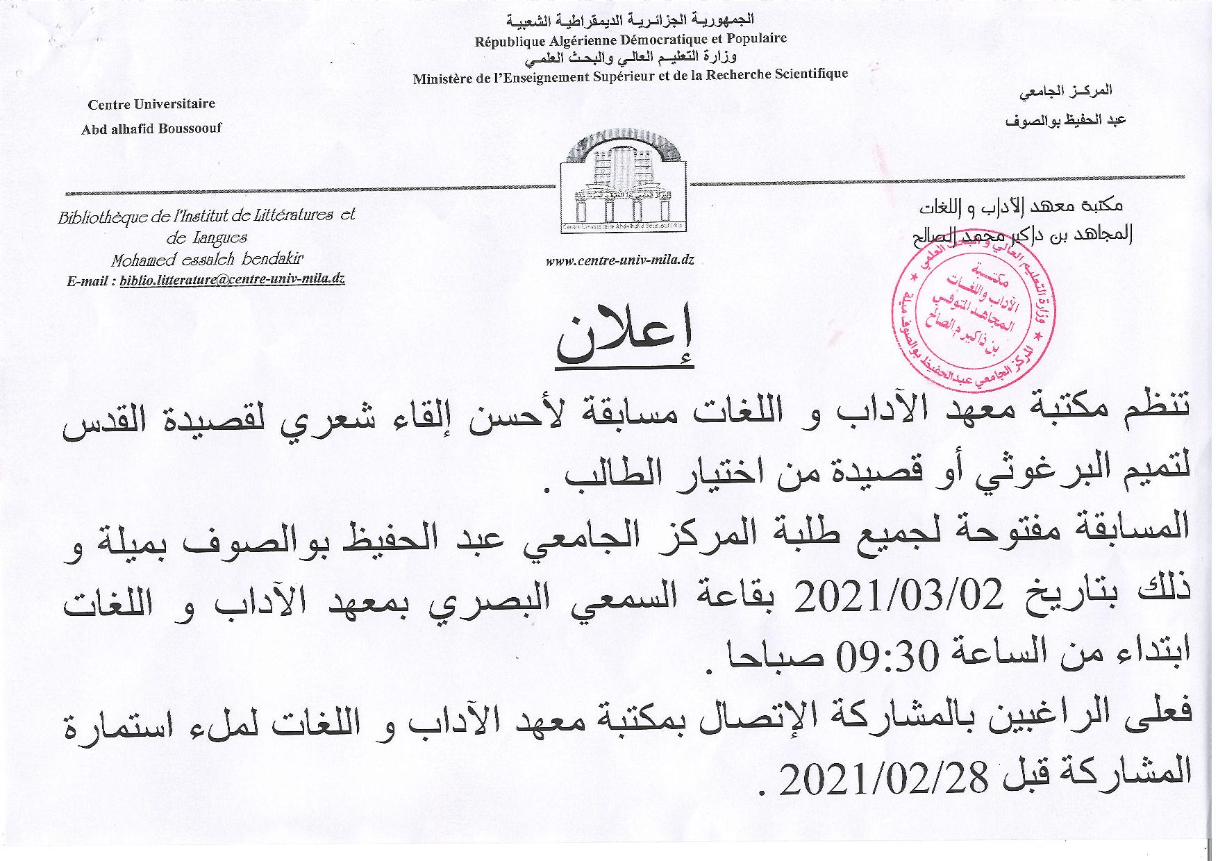 الملتقى الوطني الهجين حضوري و عن بعد الموسوم بـ