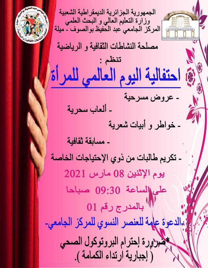 تهنئة مدير المركز الجامعي عبد الحفيظ بوالصوف بمناسبة اليوم العالمي للمرأة