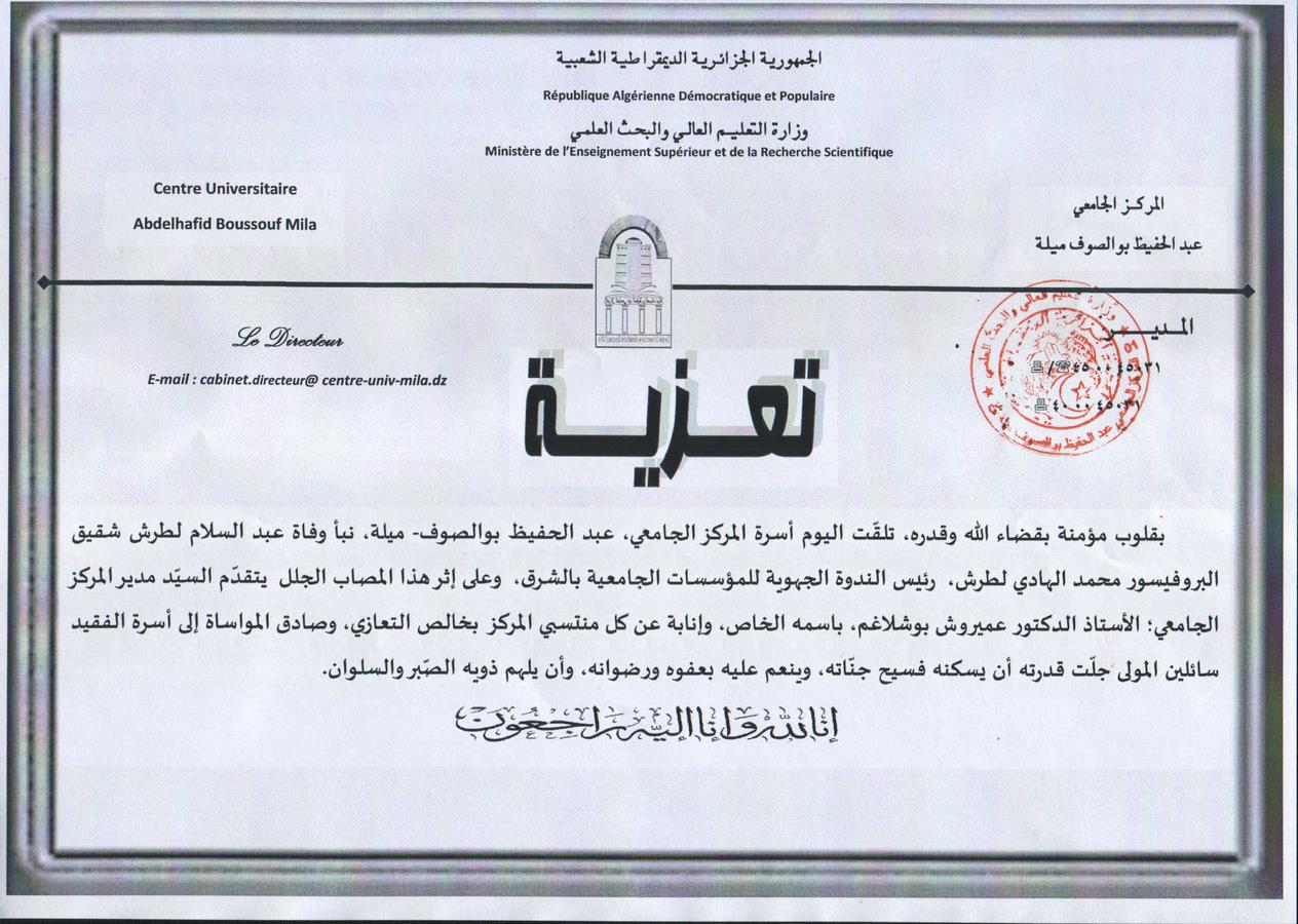 كلمة السيد مدير المركز الجامعي عبد الحفيظ بوالصوف_ميلة
