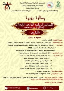 تنظيم الطبعة السادسة للمسابقة الوطنية للإبداع الطلابي ” الشعر”