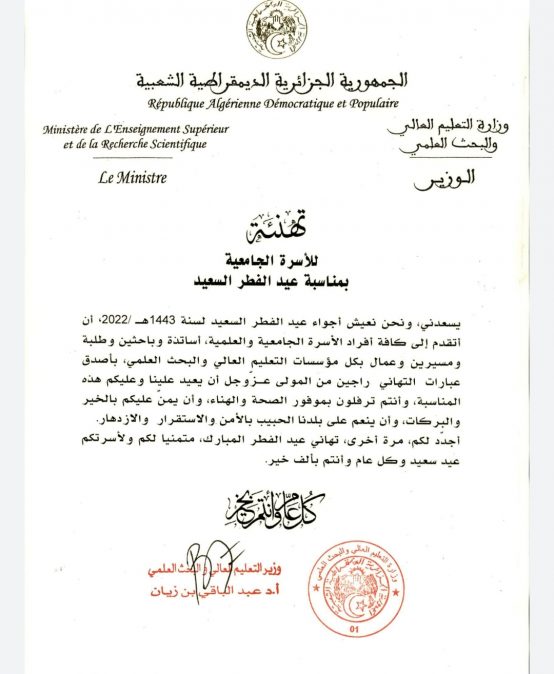 تهنئة السيد مدير المركز الحامعي عبد الخفيظ بوالصوف ميلة