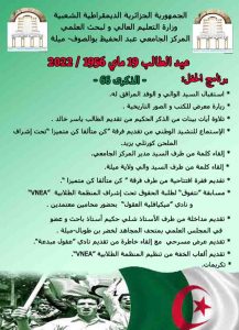 رسالة السيد عبد المجيد تبون الموجهة للأسرة الجامعية بمناسبة إحياء الذكرى السادسة والستون (66) ليوم الطالب المصادف لـ 19 ماي 2022