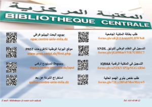مختلف الخدمات الرقمية بالمكتبة المركزية للمركز الجامعي عبد الحفيظ بوالصوف ميلة الخدمات الرقمية للمكتبة المركزية طلب إستخراج بطاقة المكتبة إفتراضيا. اضغظ هنا 2022-09-19 | المكتبات الجامعية