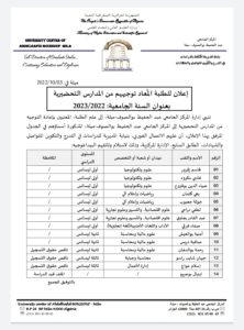 إعلان للطلبة المعنيين بإعادة التوجيه من المدارس التحضيرية 2022-10-03 | إعلانات للطلبة . الدراسات في التدرج