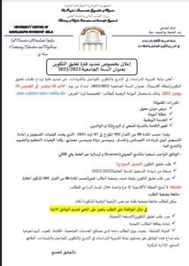 إعلان عن تمديد فترة إيداع طلبات تعليق التكوين(طلب عطلة أكاديمية) 2022-11-20 | إعلانات للطلبة . الدراسات في التدرج . بكالوريا 2020 . بكالوريا 2021 . بكالوريا 2022