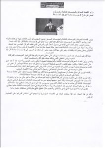 إعلان بخصوص مشروع مؤسسة اقتصادية