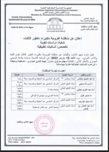 إعلان عن مناقشة أطروحة الدكتوراه للطالبة سهام سراوي بمعهد الآداب واللغات 2023-03-15 | العلاقات الخارجية . معهد الآداب