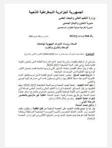 إعلان بخصوص عملية تجديد المنح الدراسية بالخارج للسنة الجامعية 2023- 2024 (التكوين الإقامي بالخارج) وثائق تجديد المنح الدراسية بالخارج للسنة الجامعية 2023- 2024 موجودة في الر وابط أدناه: مذكرة متابعة باللغة العربية اضغط هنا مذكرة متابعة باللغة الفرنسية اضغط هنا مذكرة متابعة باللغة الانجليزية اضغط هنا 2023-04-02 | العلاقات الخارجية