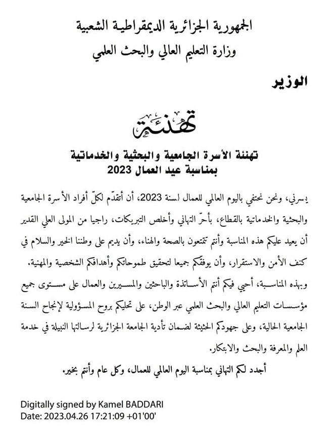 دعوة للمشاركة في مهرجان المديح والإنشاد الطلابي الذي تنظمه مديرية الخدمات الجامعية أدرار، وذلك في الفترة الممتدة من 03 إلى 07 فيفري 2026