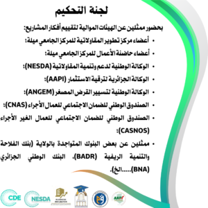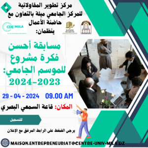 مركز تطوير المقاولاتية للمركز الجامعي عبد الحفيظ بوالصوف ميلة بالتعاون مع حاضنة الأعمال ينظمان: