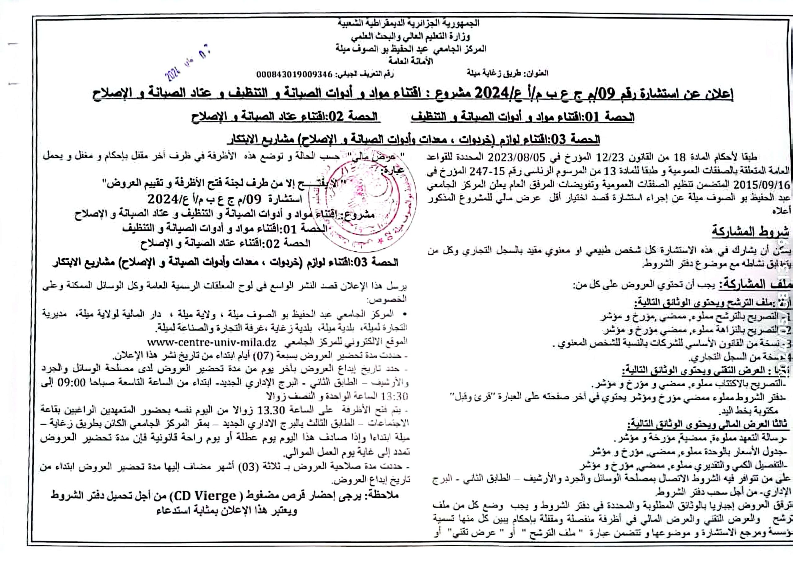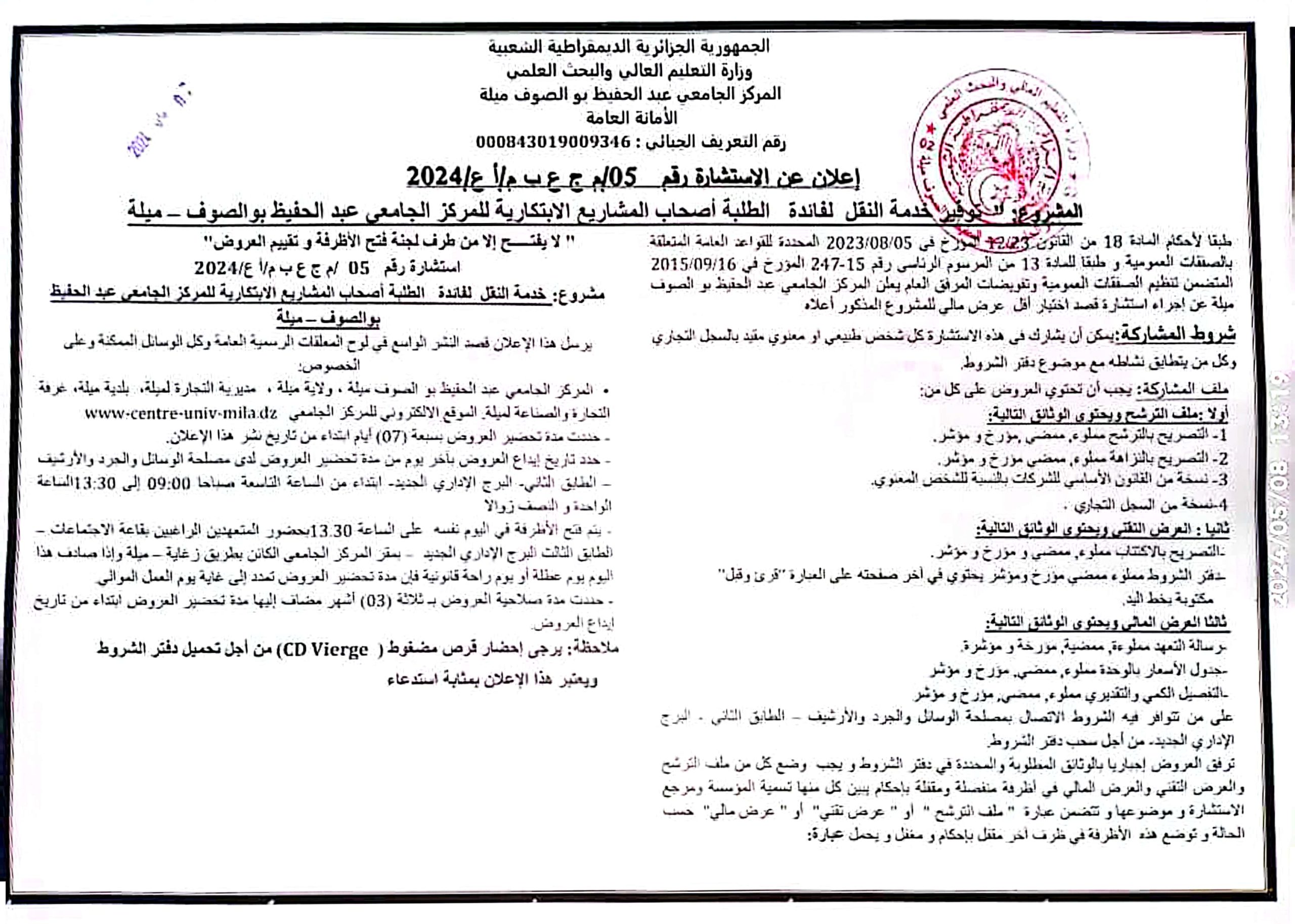 إعلان بخصوص مشروع مؤسسة اقتصادية