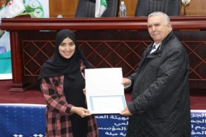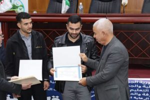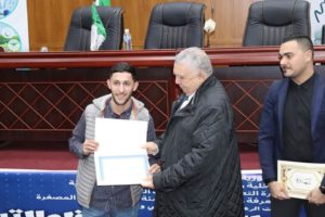 وتم بعد ذلك توزيع شهادات تكريمية على السادة الاساتذة والمؤطرين الذين ساهموا في تنشيط الاسبوع العالمي للمقاولاتية وعلى راسهم حاضنة الاعمال ومركز دعم المقاولية وممثلي المؤسسات(nesda+angem) والاساتذة المرافقين والساهرين على نجاح العملية.