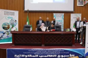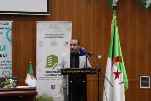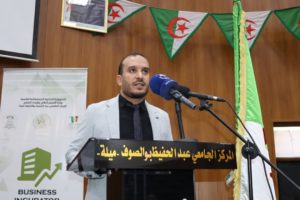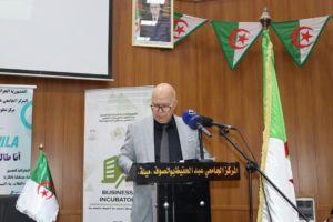 استهل الكلمة الدكتور عميروش بوشلاغم الذي رحب بالحضور من ضيوف وسلطات محلية وعلى راسهم الوالي وجه كلمة شكر للوالي والسلطات الولاىية على مساهمتها الفاعلة في هذا الاسبوع. كما اشاد بعمل حاضنة الاعمال و مركز دعم المقاولاتية والمؤسسات الفاعلة والمساهمة في انجاح هذه العملية. والاساتذة وااهيئات والنوادي المشاركة في تأطيرها وانجاحها.