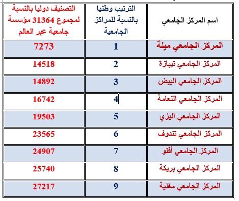 المرتبة الاولى: المركز الجامعي ميلة
