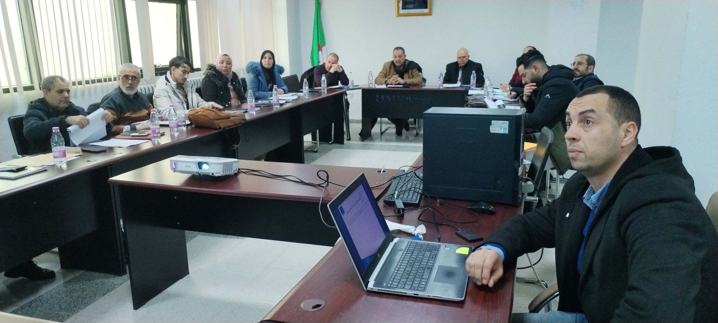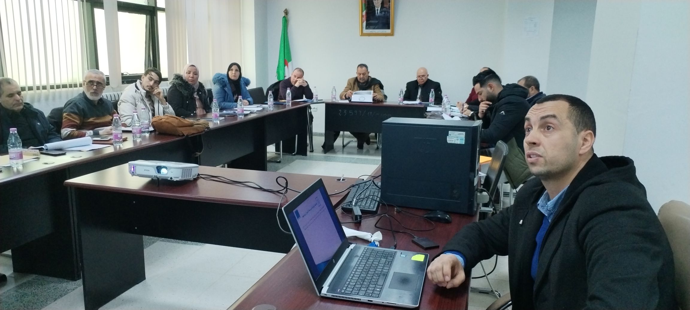 تطبيقا لتعليمات السيد الأمين العام لوزارة التعليم العالي والبحث العلمي المتضمنة في المراسلة رقم : 57 / أ ع/2025 المؤرخة في 21 جانفي 2025 تم اليوم الثلاثاء 4 فيفري 2025 بدءا من الساعة العاشرة صباحا تنظيم اجتماع استثنائي لمجلس إدارة المركز الجامعي بخصوص إنشاء مؤسسة فرعية تسمى مسرعة الأعمال الجامعية لتوطين حاضنة الأعمال التابعة للمركز الجامعي عبد الحفيظ بوالصوف ميلة