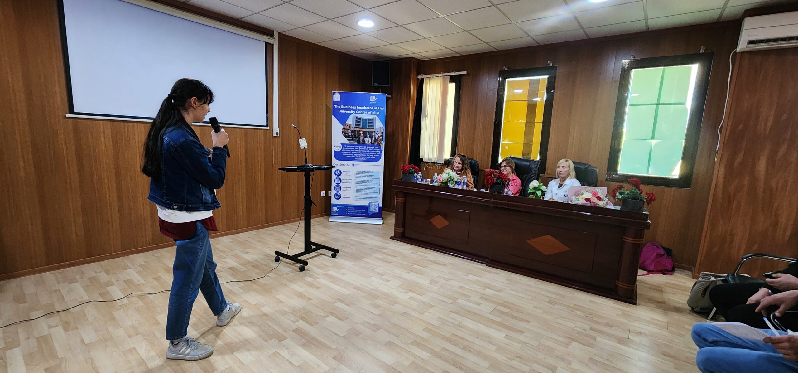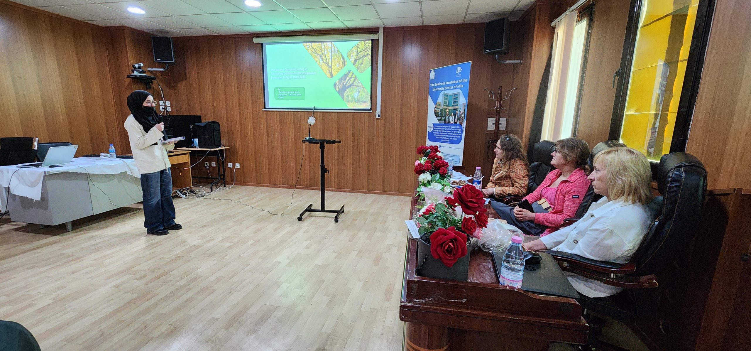 كما قددمت الطالبة دعاء بن عبد الرحمن عرضا بعنوان: دور التمويل الاخضر في دعم التنمية المستدامة دراسة حالة البلدان الاوروبية 2010-2023.