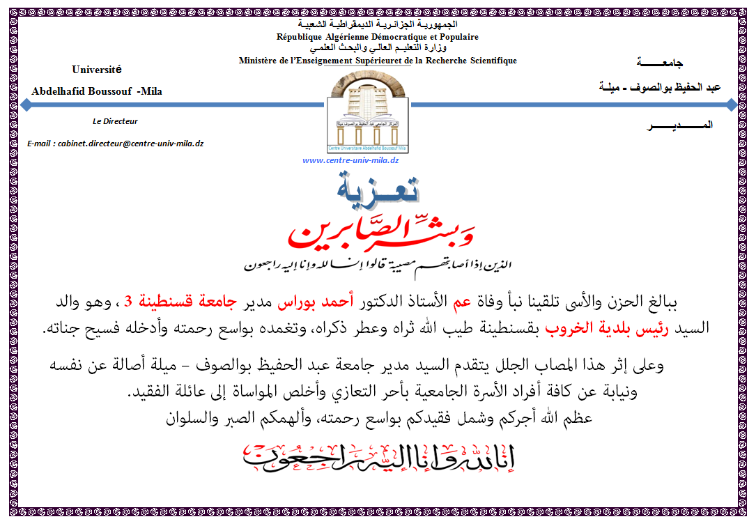 تعزية – وفاة عم الأستاذ أحمد بوراس – مدير جامعة قسنطينة 3