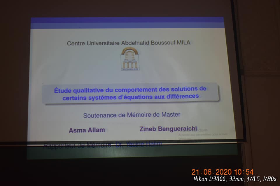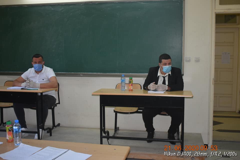 انطلاق مناقشات مذكرات التخرج طور الماستر بكل معاهد جامعة عبد الحفيظ بوالصوف- ميلة – مع الحرص على الالتزام بتدابير الوقاية من جائحة كورونا covid-19 حيث وفرت إدارة الجامعة كل الوسائل اللازمة لتعقيم