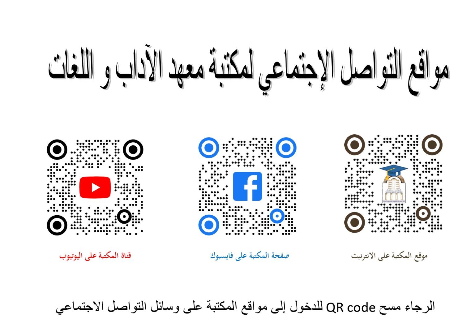لطرح أي انشغالات أو تساؤلات حول المكتبة يمكنكم الاتصال على البريد الالكتروني او صفحة المكتبة على الفايسبوك